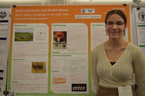 curc-presentation March 11, 2019 561 × 374 Archaeology Erica Bradley presenting her archaeological research on hearth feature morphology at the Fossil Creek archaeological site in southeast Fort Collins at CSU’s Celebrate Undergraduate Research and Creativity